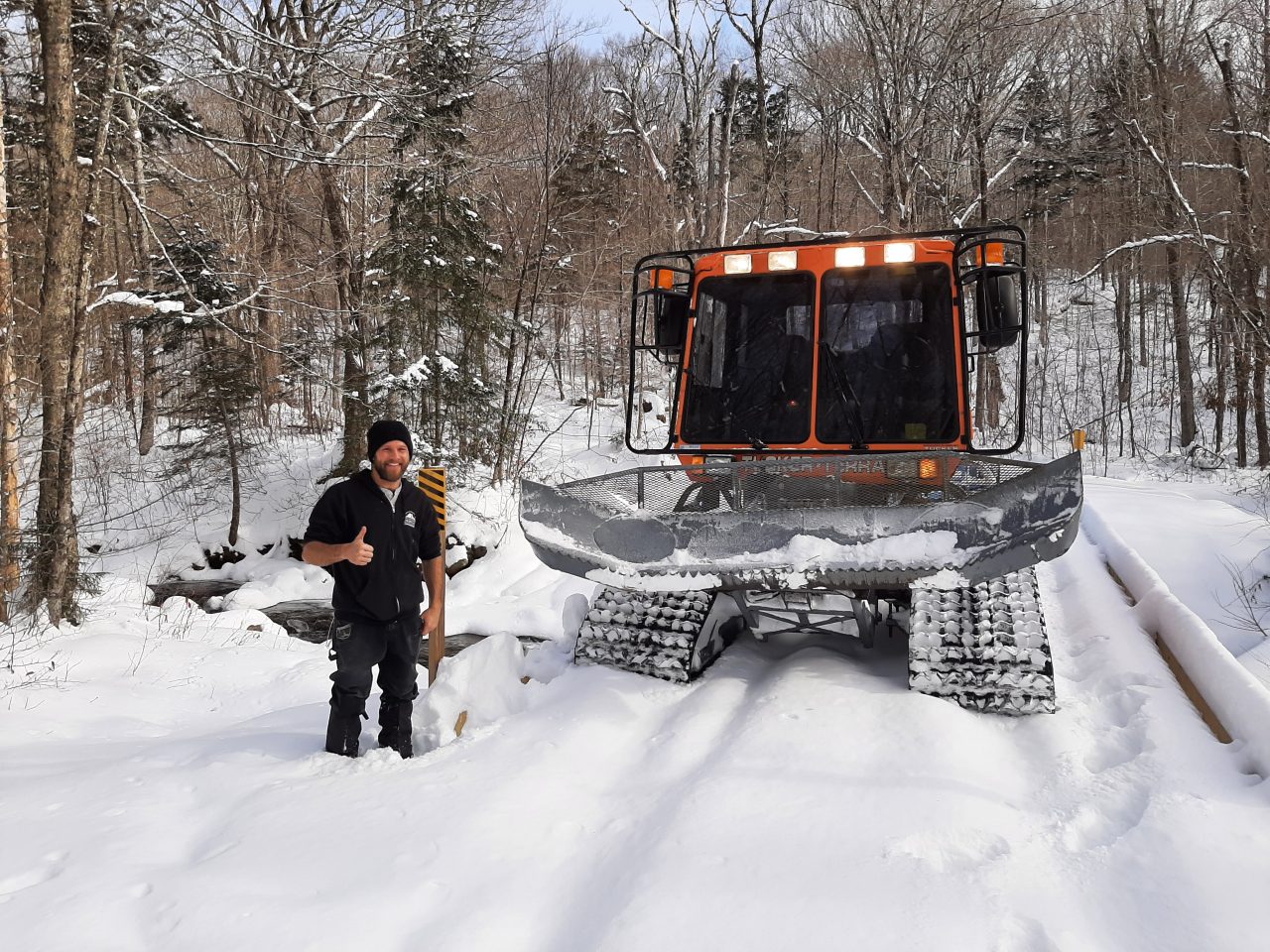 if you want to venture out be very careful because of the conditions. I did all the upper trails, 4&7 to RD650 and then to McLaughlin Falls, 407 to the red gate, RD651 to RD65 and RD676 to the plowed road by Stouts. You will be clicking rocks probably and some water crossings are not froze yet. There were no trees down thanks to John and Ben Hogan and Scott Ryan for going out last week and clearing every thing. Dad plowed the parking lot at the Groomer Shed and I did the one at the notch. Ryan from the State rode with me to see what it is like in early season with the water bars.and we discussed trail improvements with water crossings and other misc things. It was a good day and we did not get stuck or as Paul Racine would say “we did not loose forward movement” We were out 8 hours. Again if you go out ride carefully!