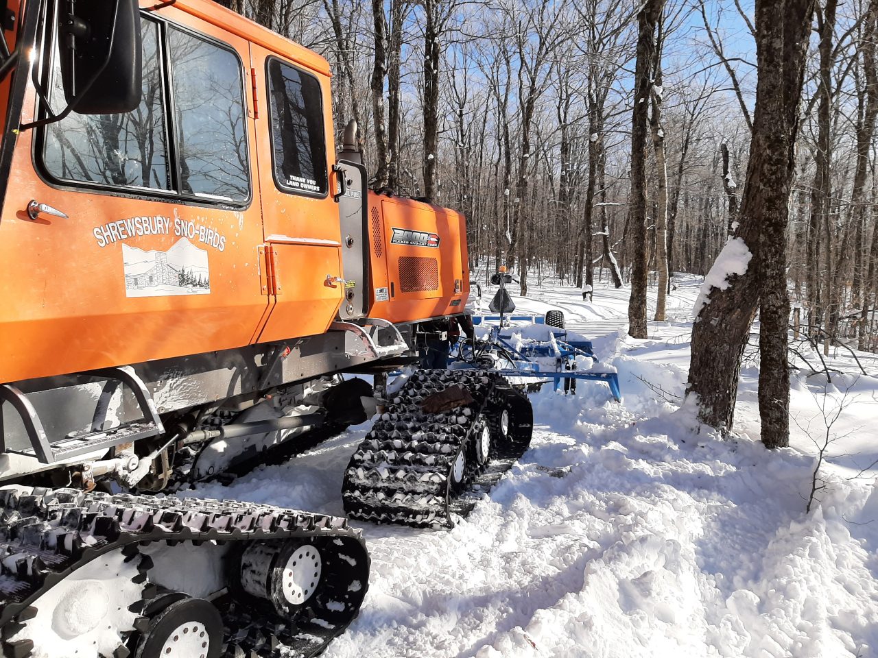 Scott and I were out grooming all day yesterday. The Tucker started and stayed running fine, that is a very good thing! I am still looking into some voltage issue to see if we need do do more to insure we do not have an issue on the trail.The trails at this time are very good in most areas. We did every thing except 407 from the State Red Gate as there had only been a couple of sleds on it and it was hard and flat after Curt had groomed them, On the upper trail I got a tree caught in-between the Tucker and drag and could not correct it so we unhooked and got the Tucker up on the hard trail and with a come a long we were able to pull the drag from the tree and hook the drag back on. I have never had this happen to me before and I was thinking I have been grooming over 40 years.